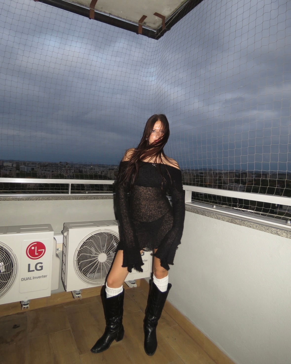 Ręcznie dziergana sukienka mojego projektu. Do wydziergania sukienki użyłam luksusowej włóczki zawierającej alpakę (77%) i jedwab (23%). Powstały materiał jest niesamowicie miękki i lekki, a równocześnie bardzo ciepły. Alpaka i jedwab mają naturalne właściwości odprowadzania wilgoci i są oddychające, zapewniając wysoki komfort noszenia.