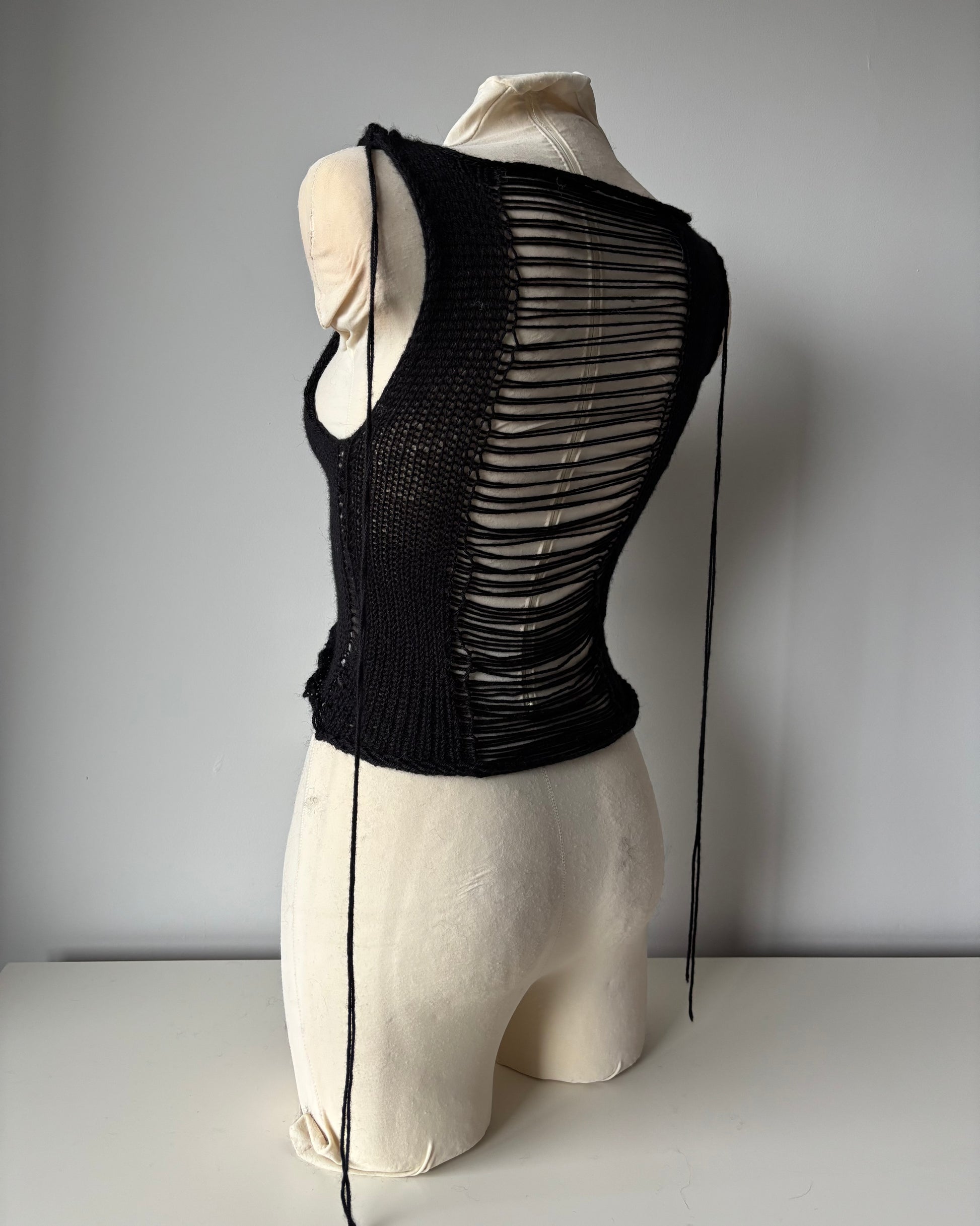 Model został zaprojektowany w svbwersyjnym charakterze, z dużym wycięciem i nieregularną strukturą splotu. Top może być noszony dwustronnie - z wycięciem z przodu lub z tyłu, w zależności od stylizacji. Top jest bardzo miękki w dotyku i rozciągliwy.